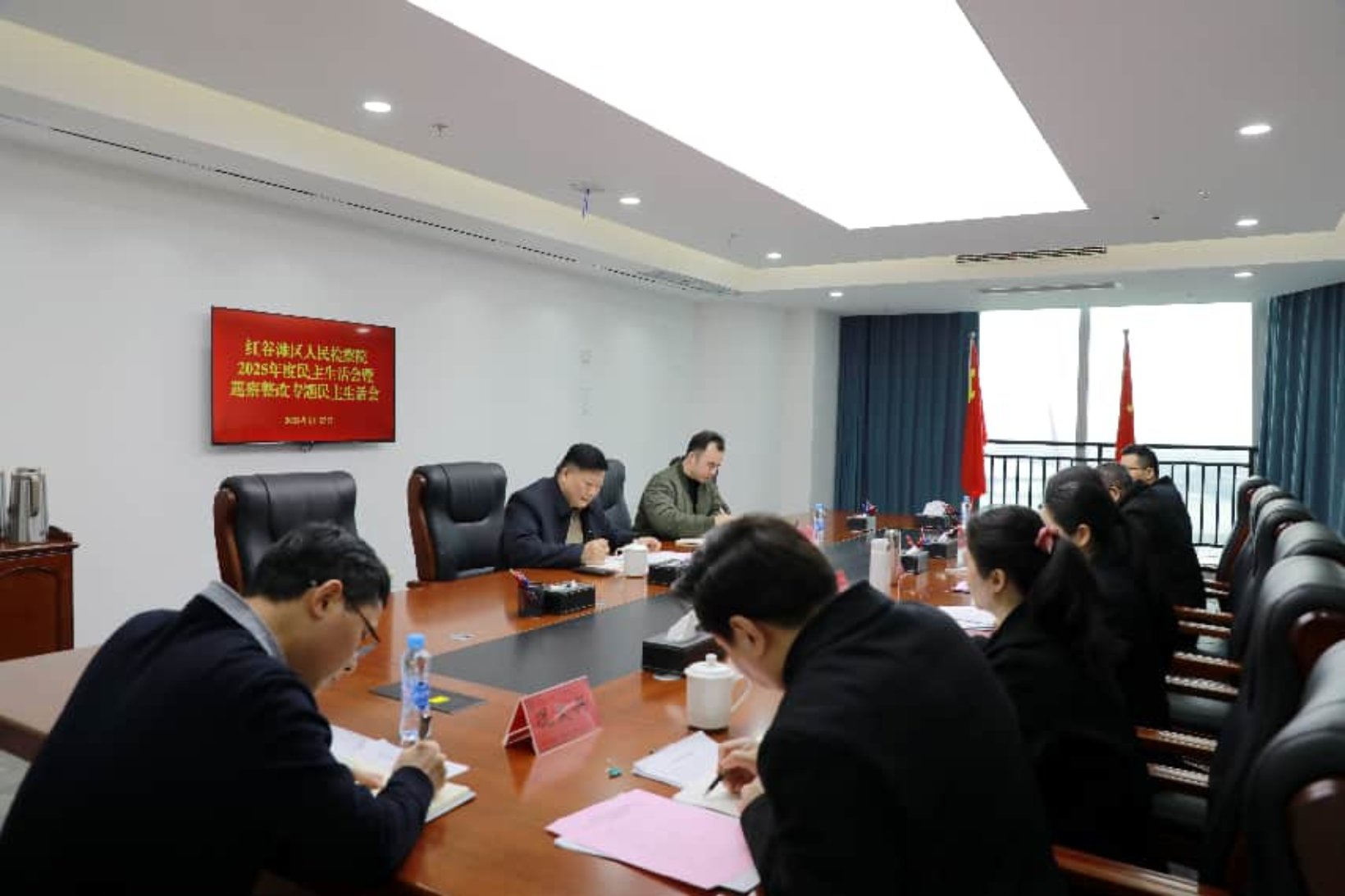 根据区委部署要求,2月27日上午,红谷滩区人民检察院召开2025年度民主生活会暨巡察整改专题民主生活会。院党组书记、检察长高虹主持会议并作总结讲话,区第二督导组组长王仪星一行到会指导,全体班子成员参加会议,党外领导干部及其他区管干部列席会议。