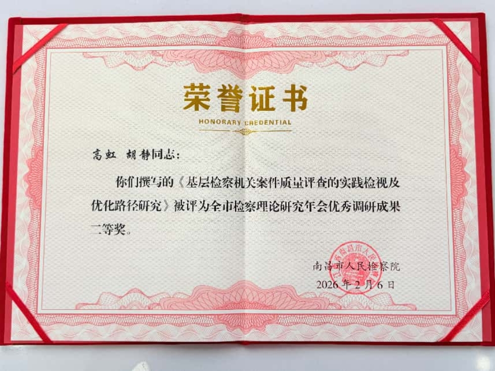 2月10日,南昌市人民检察院召开全市检察理论研究年会,红谷滩区人民检察院喜获两项奖项,载誉而归!
