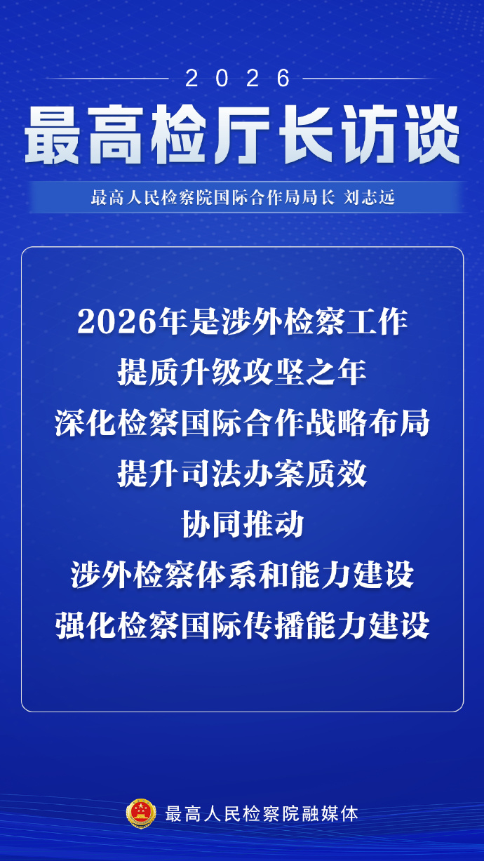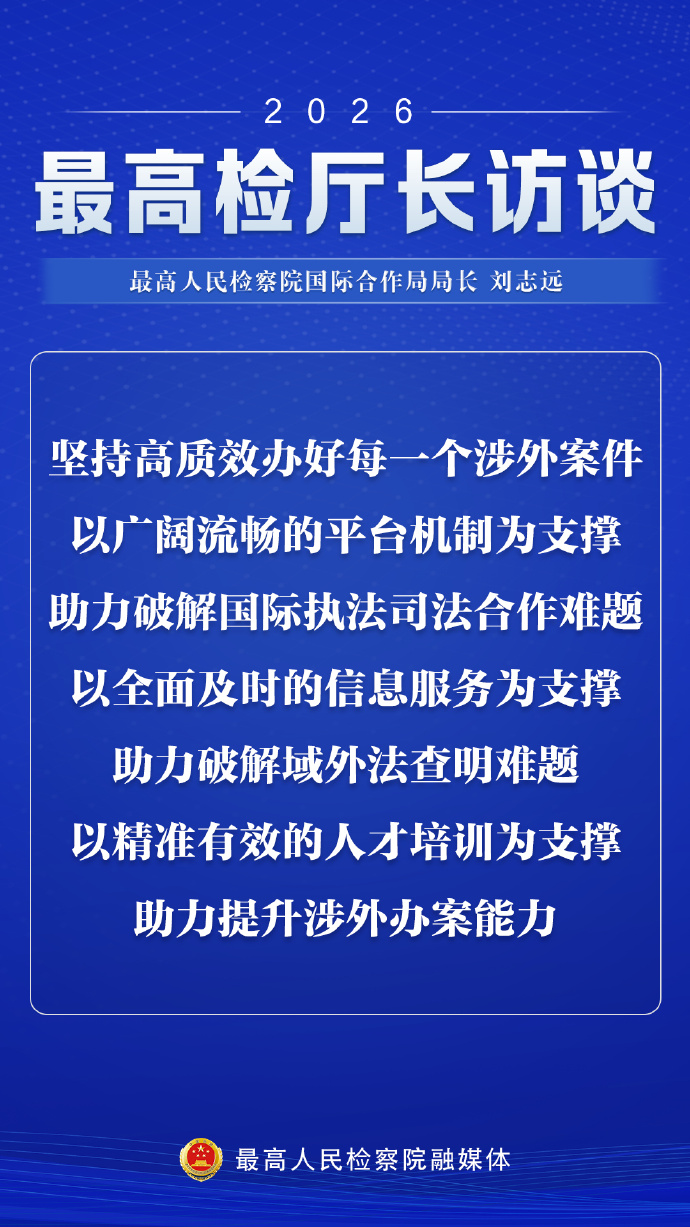 2月28日,最高人民检察院国际合作局局长刘志远在做客2026年最高检厅长访谈表示,最高检坚持统筹推进国内法治和涉外法治,主动融入涉外法治工作大协同格局,全面贯彻落实《关于加强涉外检察工作的意见》,在涉外检察领域实现“深耕细作”。访谈有哪些亮点?一组海报解锁↓