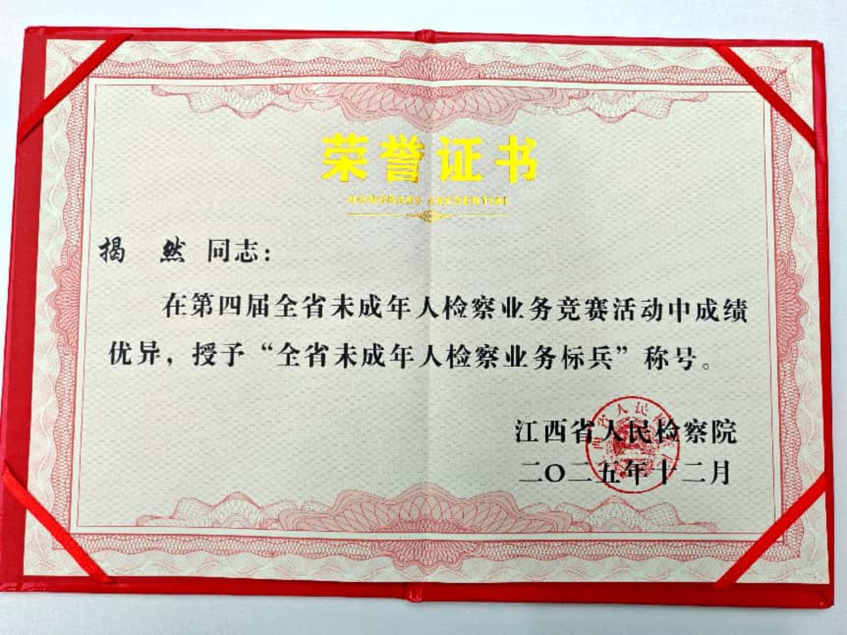 【红检|喜报】揭然荣获“全省未成年人检察业务标兵”称号!